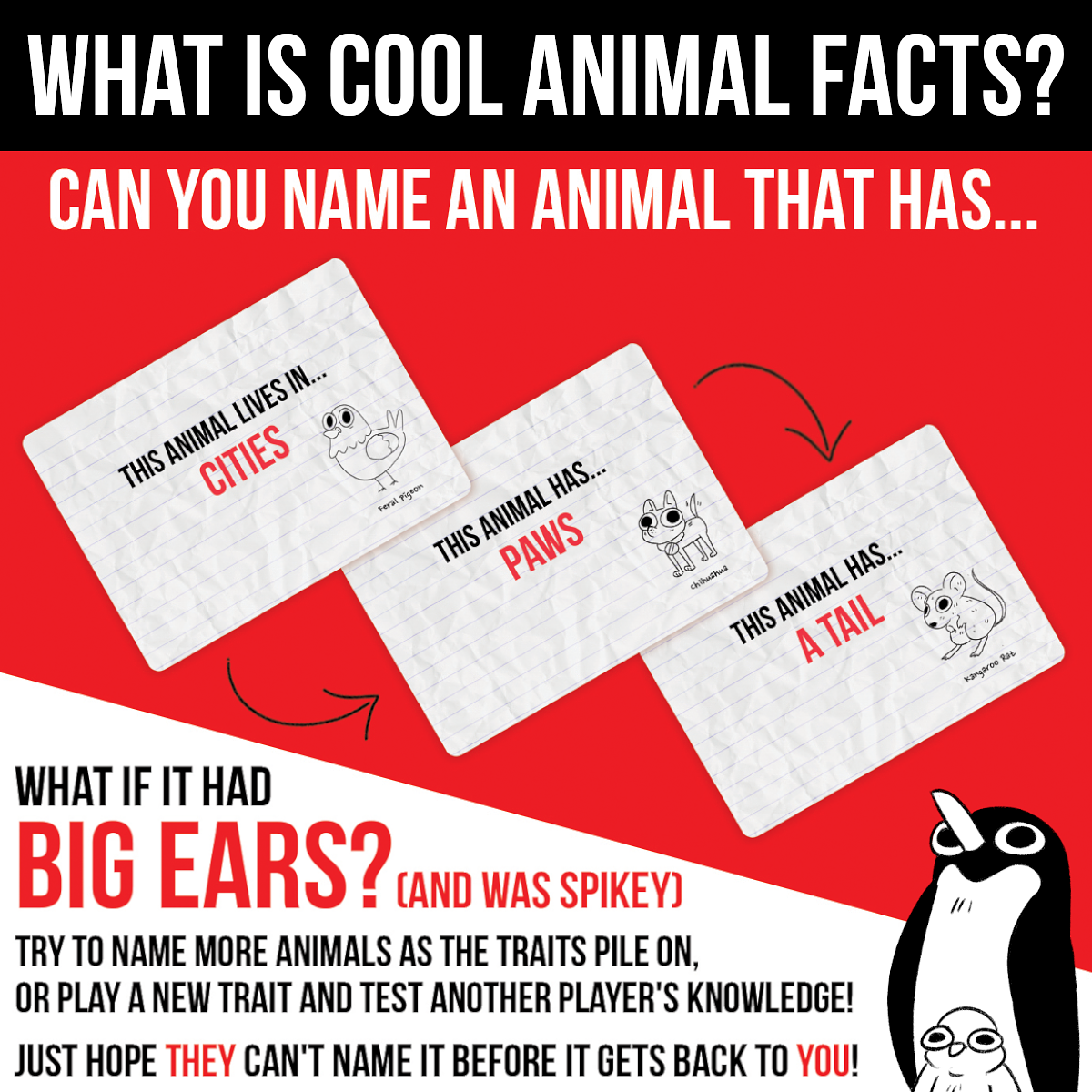 Try to name more animals as the traits pile on, or play a new trait and test another player's knowledge!