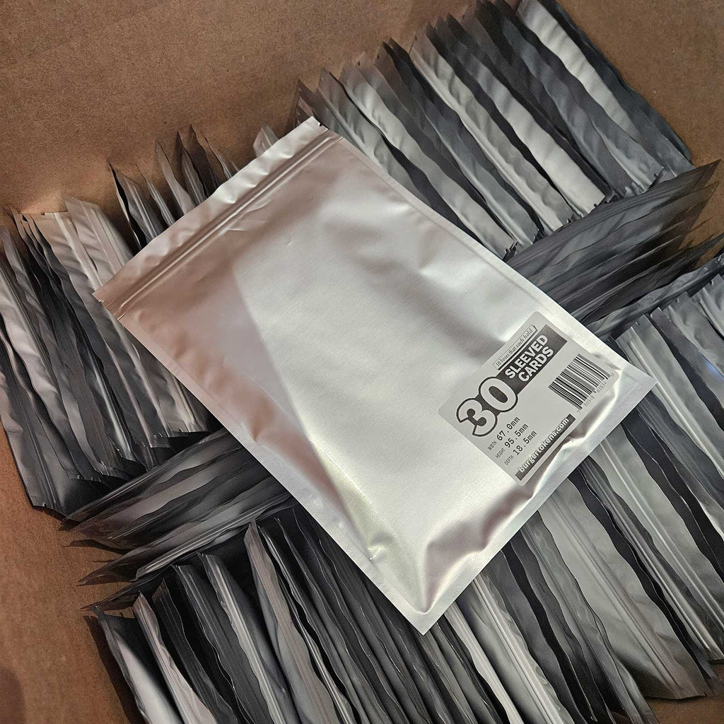Burger Tokens' deck boxes for sleeved cards have been tested with Level 99 Games Premium Sleeves, as well as with the following brands which represent the extreme ends of the spectrum for height, width, and thickness: