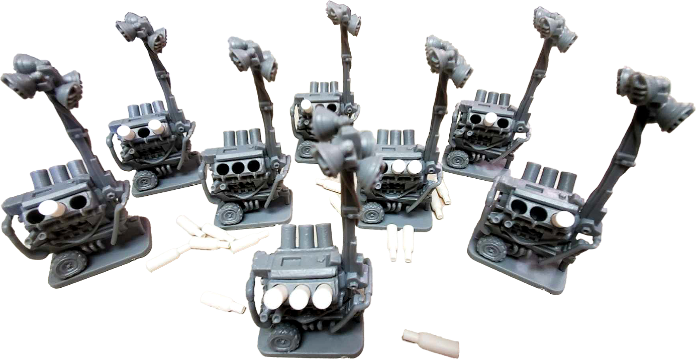 8 amazingly detailed Generator miniatures with progress tracking pegs.